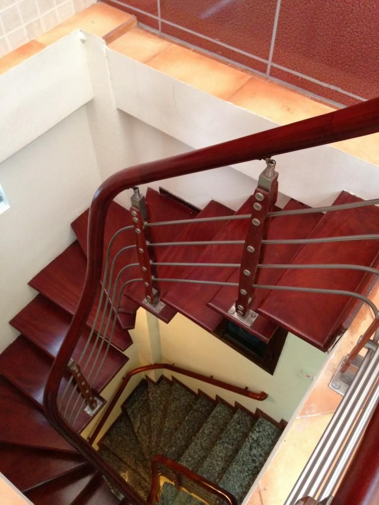 Cầu thang lên tầng 2, 3, 4 được lát đá, tay vịn gỗ, lối đi rộng nên vận chuyển đồ thoải mái.